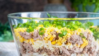 Jajka faszerowane szynką z dodatkiem chrzanu, musztardy i suszonej śliwki.