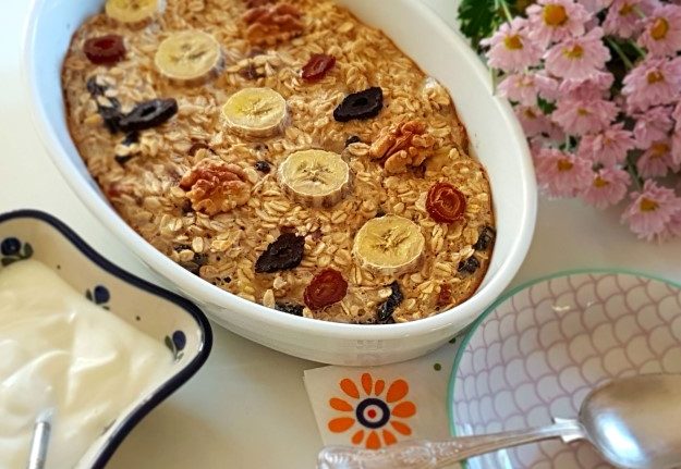 Pieczona owsianka z bananem i bakaliami