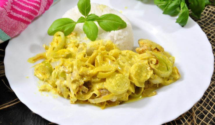 Pierś z kurczaka z porem w sosie curry to błyskawiczne i bardzo pyszne danie na obiad dla wielbicieli orientalnych smaków. Podajemy z ryżem lub kaszą jaglaną.