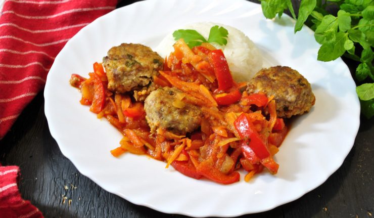 Pulpety jaglane w sosie pomidorowym z warzywami to przepis na zdrowy i stosunkowo szybki obiad. Można podać je z ryżem albo makaronem.