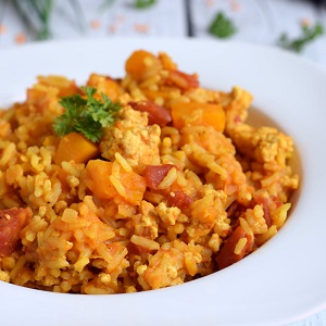 Jednogarnkowe danie z ryżem, mięsem mielonym i dynią