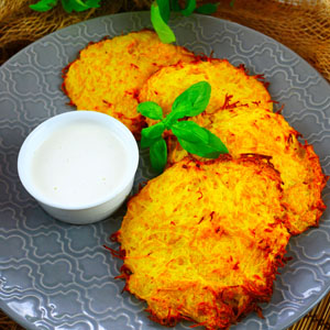 Fit placki ziemniaczane z dynią pieczone w piekarniku są zdrowe, smaczne, chrupiące i niskokaloryczne. Jeśli z podanych składników zrobimy 12 placków, to jeden będzie miał tylko 77 kcal. Placki świetnie smakują podane z sosem czosnkowym lub jogurtowym i ulubioną surówką. Jeśli chcecie przygotować je w wersji wegańskiej to po prostu nie dodawajcie jajka, też będą dobre. Dzięki dodaniu mąki z ciecierzycy placki są bezglutenowe, ale jeśli gluten wam nie przeszkadza, możecie dodać każdą inną mąkę.