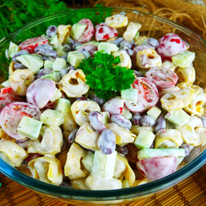 Sałatka z tortellini, ogórkiem i pomidorem jest prosta, szybka do zrobienia i bardzo smaczna. Świetnie sprawdzi się na imprezie, spotkaniu ze znajomymi, grillu czy po prostu bez okazji, jako danie na śniadanie lub kolację. Pyszne włoskie pierożki tortellini w połączeniu z dużą ilością warzyw i sosem czosnkowym tworzą udaną kompozycję, która zasmakuje każdemu.
