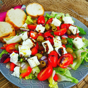 Śródziemnomorska sałatka z fetą i oliwkami jest prosta do zrobienia, zdrowa, smakuje wyśmienicie i można ją zrobić w nie więcej niż 15 minut. Ponieważ kuchnia śródziemnomorska jest jedną z najzdrowszych na świecie, warto się nią inspirować. Taka sałatka ze świeżych warzyw jest bogata w witaminy i minerały. Jest świetną przystawką na imprezie, sprawdzi się też jako obiad w upalne dni, nawet dla osób będących na diecie odchudzającej.
