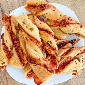 Serowe paluchy pizzowe to idealny pomysł na smaczną przekąskę, która posmakuje każdemu. Ciasto drożdżowe z ulubionymi dodatkami, podawane w formie zawijanych paluchów smakują obłędnie!