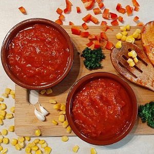 Aromatyczny sos pomidorowy z krojonych pomidorów i świeżych ziół podsmażonych na oliwie, to prawdziwa gratka dla wielbicieli dobrej domowej pizzy 🙂 Idealnie pasuje zarówno do smarowania surowych spodów do pizzy, jak również jako sos do gotowej, już upieczonej pizzy. Przygotowanie tego sosu zajmuje chwilę czasu, ale zdecydowanie warto!