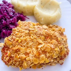 Kurczak w płatkach kukurydzianych to świetna alternatywa dla tradycyjnych kotletów w panierce z bułki tartej.