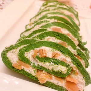 Rolada szpinakowa to bardzo smaczna i szybka w przygotowaniu przekąska. Składa się z szpinakowego ciasta, kremowego serka i łososia wędzonego na zimno.