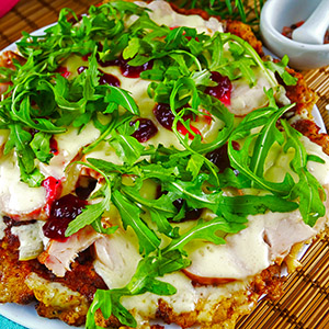 Pizza chlebowa z patelni z pysznymi dodatkami na wierzchu to bardzo smaczny i szybki sposób na pozbycie się resztek z lodówki. Do jej przygotowania użyłam kilka kromek czerstwego chleba, a także kawałek wędzonej piersi z kurczaka, która została po robieniu sałatki, zalegającą rukolę i ser żółty, a także cebulę, którą zawsze się w domu znajdzie. Możecie oczywiście użyć innych dodatków, jakie akurat macie w lodówce: resztki wędlin, pieczonego mięsa z obiadu, paprykę, kukurydzę, pikle, itp. Danie świetnie sprawdzi się na śniadanie, kolację czy nawet obiad, gdyż jest bardzo sycące.