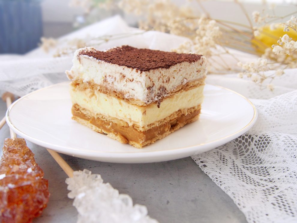 3 bit to połączenie masy kajmakowej, kremu budyniowego oraz bitej śmietany z herbatnikami.