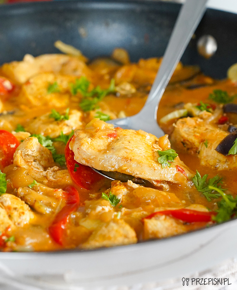 Gulasz z kurczaka z bakłażanem i papryką to przepyszne danie, które musicie wypróbować. Jest to doskonała propozycja na obiad dla całej rodziny, na co dzień, jak i na specjalne okazje.
