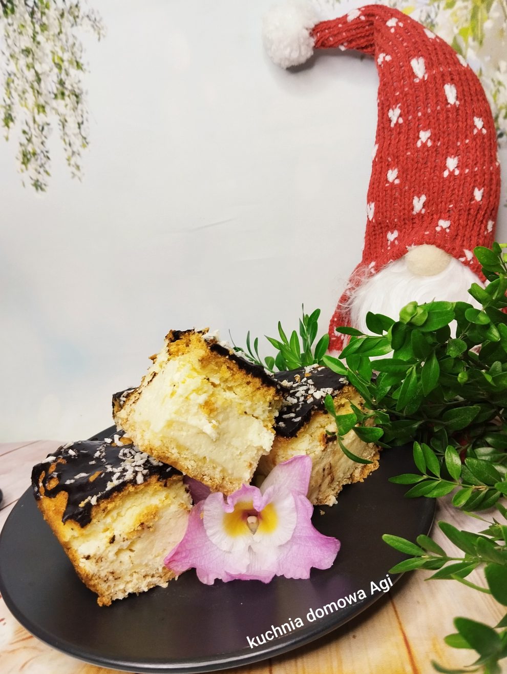 Hej ho jak wam mija dzień? biegnę do was z polecanym prze ze mnie sernikiem który wymyśliłam na szybko gdyż kupiłam w promocji twaróg w kostkach z krótką datą ważności a że nie chciałam aby się zepsuł to na szybko wymyśliłam takie oto ciasto z sernikiem, a ciasto jest z wiórkami kokosowymi, myślę że spodoba wam się przepis tym bardziej że sernik za bardzo nie opada tylko podczas pieczenia pięknie popękało ale doświadczeni kucharze mi mówili że to znak iż sernik został dobrze upieczony tak więc zajrzyjcie po przepis i działajcie będziecie tak zadowoleni jak ja byłam
