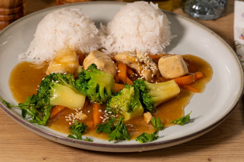 Kurczak w sosie miodowo-czosnkowym to aromatyczne i soczyste danie, które łączy słodycz miodu z intensywnym smakiem czosnku. Pierś z kurczaka, lekko podsmażane, a następnie duszone w gęstym, błyszczącym sosie przygotowanym na bazie miodu, czosnku, sosu sojowego.