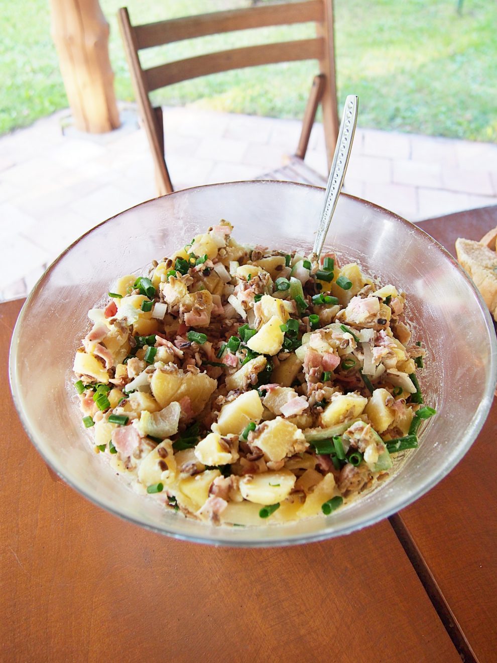 Ta sałatka nie zachwyca swoim wyglądem ale idealnie pasuje do dań z grilla. Robię ją dość często ponieważ jest banalnie prosta i stosunkowo niedroga. U nas zawsze znika błyskawicznie dlatego proponuję zrobić z podwójnej porcji