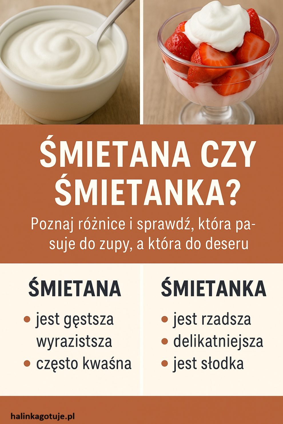 Ach, śmietana… Bez niej trudno wyobrazić sobie wiele naszych tradycyjnych potraw. Używam jej od zawsze – do zup, sosów, ciast, a nawet do ziemniaków z koperkiem, które moje wnuki mogłyby jeść codziennie. Ale choć śmietana gości w kuchni od pokoleń, to wiele osób wciąż nie wie, jaka jest różnica między śmietaną a śmietanką, która śmietana jest gęsta, a która słodka – i do czego najlepiej się nadają. Dlatego postanowiłam podzielić się moim doświadczeniem i kilkoma poradami.