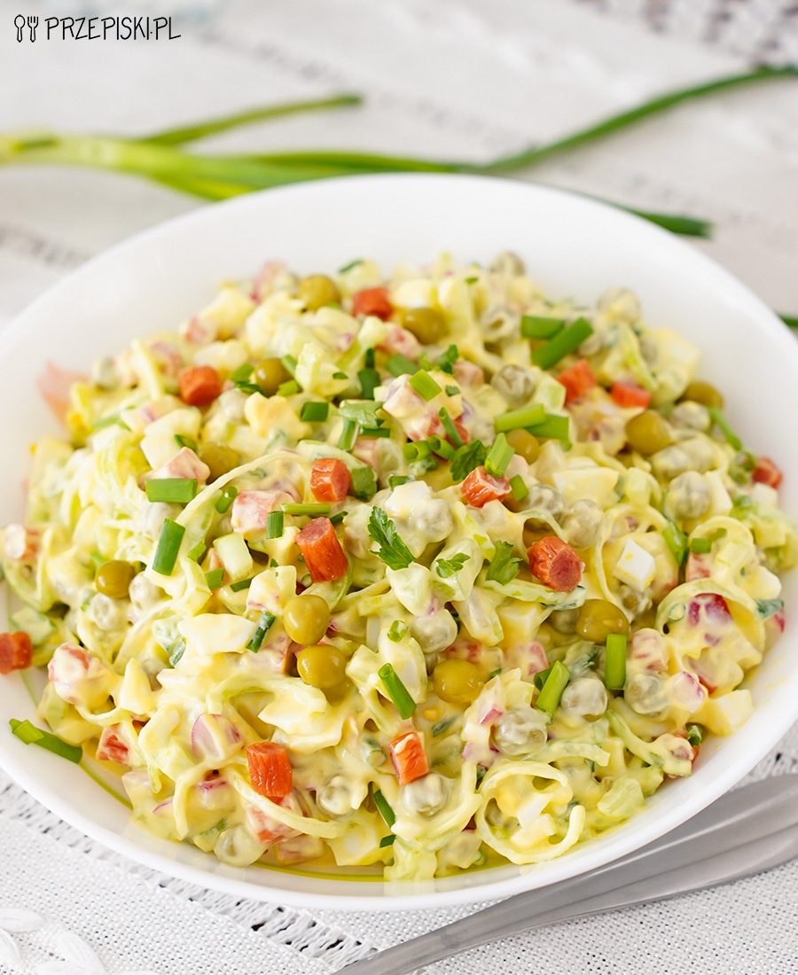 Połączenie chrupiących kabanosów, rzodkiewki, świeżego ogórka, groszku i delikatnych jajek tworzy pyszną kompozycję smaków, której trudno się oprzeć. Dodatek delikatnego sosu na bazie majonezu, jogurtu naturalnego oraz czosnku nadaje sałatce wyrazistości i domowego charakteru.