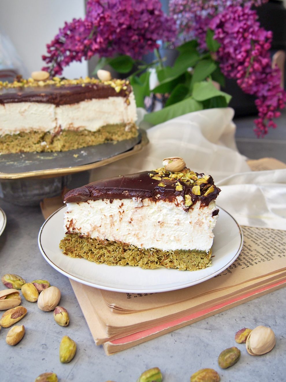 W końcu i ja uległam modzie na dubajskie słodkości i przygotowałam pyszny sernik na zimno z ciastem kataifi, kremem pistacjowym oraz solidną warstwą czekolady na wierzchu. Pistacjowy spód przyjemnie chrupie, masa serowa jest delikatna, a całość wygląda bardzo efektownie i smakuje genialnie – jestem pewna, że zakochacie się w tym deserze zwłaszcza, że robi się go bardzo szybko.