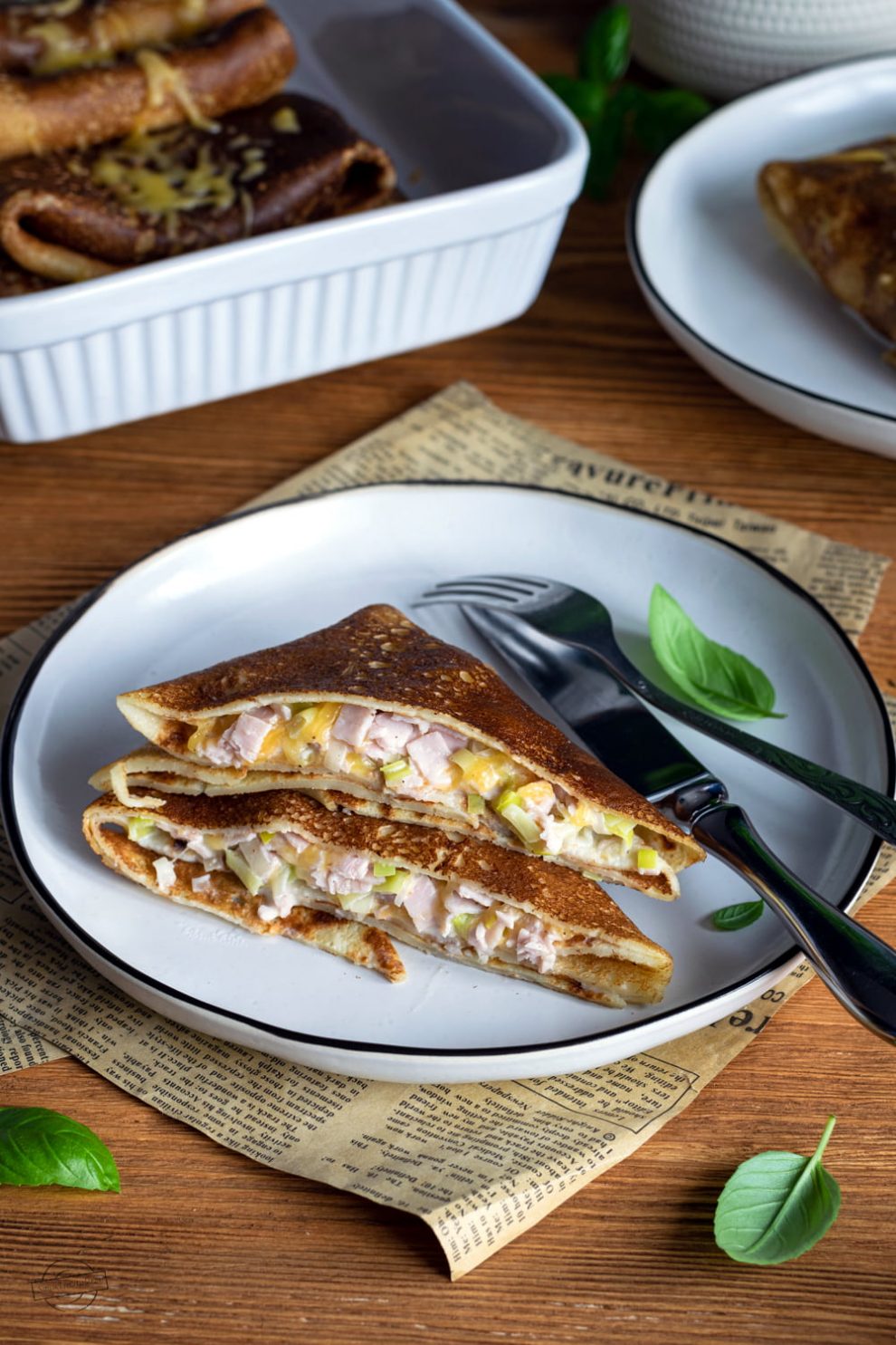 Pyszne naleśniki na wytrawnie – z szynką, porem i tartym serem