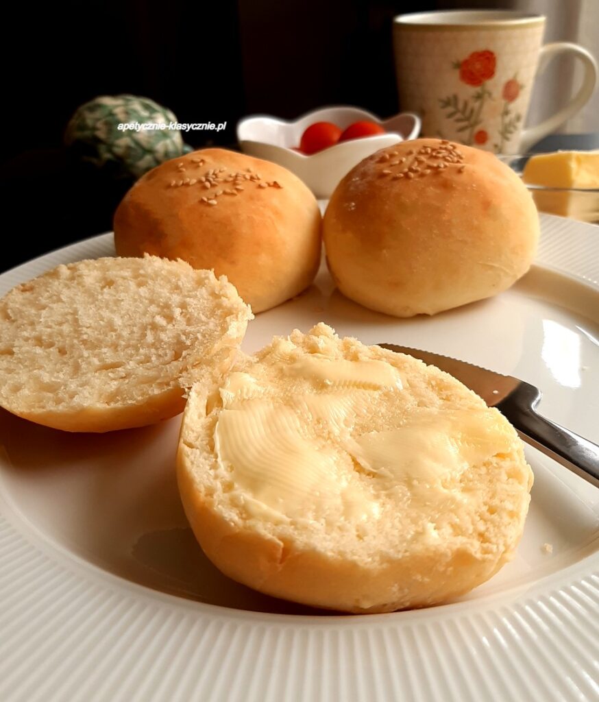 Mięciutkie i delikatne bułki pszenne z ziemniakami. Rewelacyjne w smaku, a dzięki dodatkowi ziemniaków dłużej zachowują świeżość. Domowe pieczywo zawsze smakuje i pachnie najlepiej, a bułeczki są tak dobre, że wystarczy posmarować je masłem i nic więcej nie trzeba. Przyznam się, że takie bułeczki mogłabym jeść na okrągło, a najbardziej lubię je na późne weekendowe śniadanie.