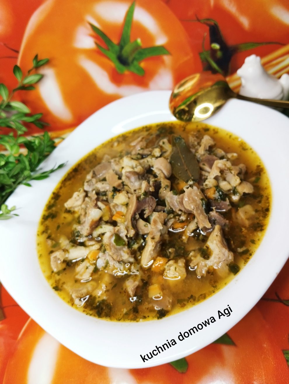 Flaczki z żołądków drobiowych i kości wieprzowych BOCZKOWYCH z zapalaną na oleju mąką
