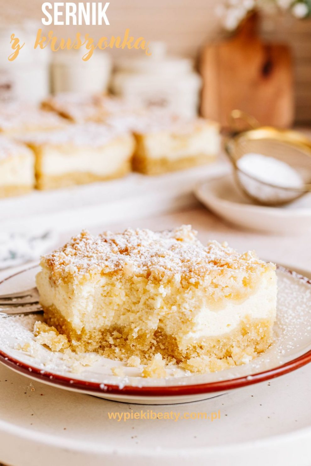 Przepis na pyszny, prosty i lekki waniliowy sernik pieczony z kruszonką.