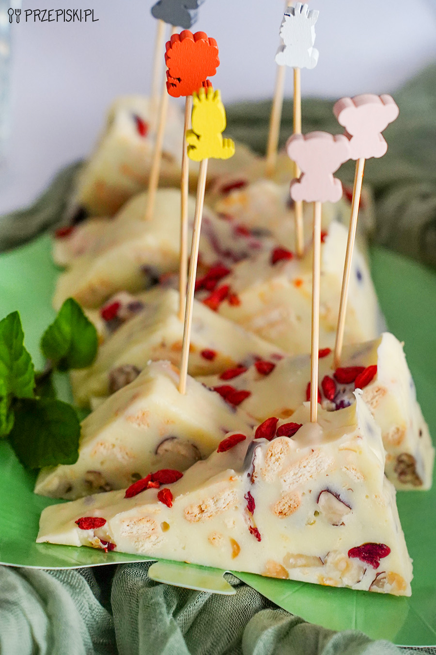 To wyjątkowe połączenie białej czekolady, mleka w proszku, herbatników maślanych i bakalii zachwyci każdego łakomczucha.