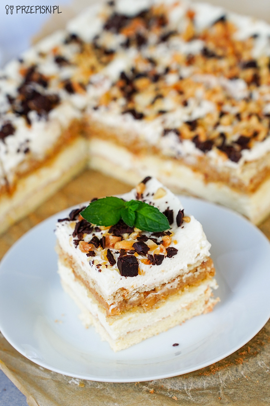 Orzechowa Chmurka – ciasto z krakersami, kajmakiem i bitą śmietaną