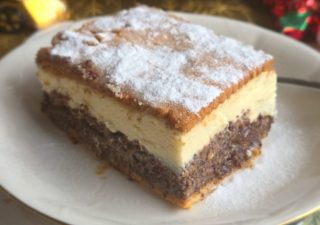 To ciasto, które łączy sentyment do klasycznej karpatki z subtelnym, zimowym charakterem. Tradycyjny krem został wzbogacony mielonym makiem, a do ciasta dodałam niewielką ilość przyprawy korzennej, tak aby całość zachowała swój znany smak i jasny kolor. Cynamon, goździki i imbir są tu tylko delikatnym tłem, które pięknie podkreśla makowy krem. Dzięki temu karpatka pozostaje lekka i dobrze znana, a jednocześnie idealnie wpisuje się w świąteczny klimat.