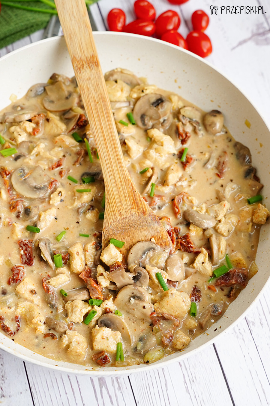 Kurczak w sosie pieczarkowym z suszonymi pomidorami