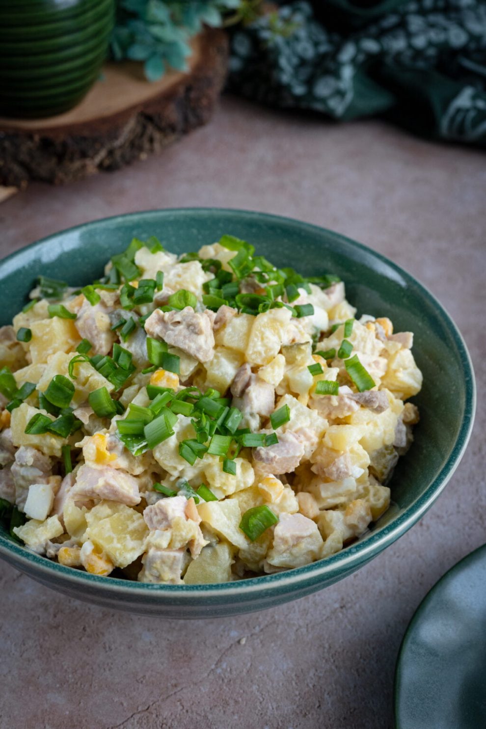 Sałatka ziemniaczana z wędzonym kurczakiem i marynowanymi pieczarkami