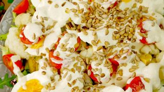Sałatka z pieczonych warzyw z tuńczykiem i soczewicą