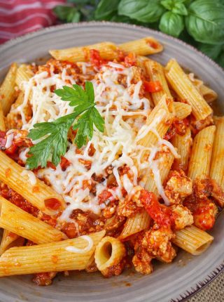 Makaron w sosie pomidorowym z mięsem i grzybami to prosty, domowy obiad. Gęsty sos, warzywa i makaron –...